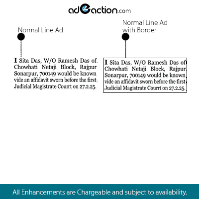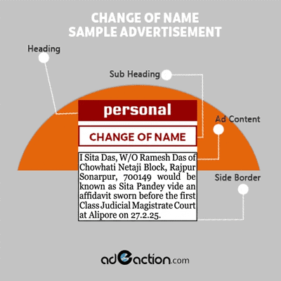 Change of Name Classified display ads are one of the most loved advertising formats. It allows you to add colours, fonts, and images to it. So it can make a good advertisement deal under classified display ads. Booknewad offers the lowest rates for newspaper advertising.