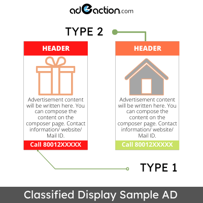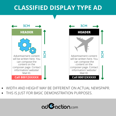 Entertainment Classified display ads are one of the most loved advertising formats. It allows you to add colours, fonts, and images to it. So it can make a good advertisement deal under classified display ads. Booknewad offers the lowest rates for newspaper advertising.