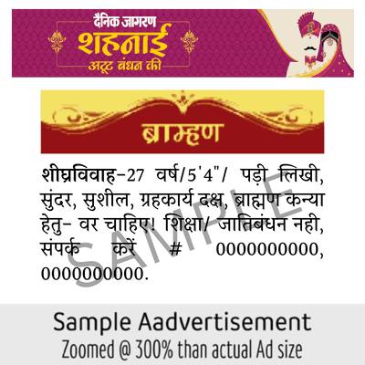 Dainik Jagran advertisement in newspaper for Matrimonial category required 300 DPI/PPI resolutions for Display Advertising.