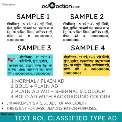 Matrimonial Classified display ads are one of the most loved advertising formats. It allows you to add colours, fonts, and images to it. So it can make a good advertisement deal under classified display ads. Booknewad offers the lowest rates for newspaper advertising.