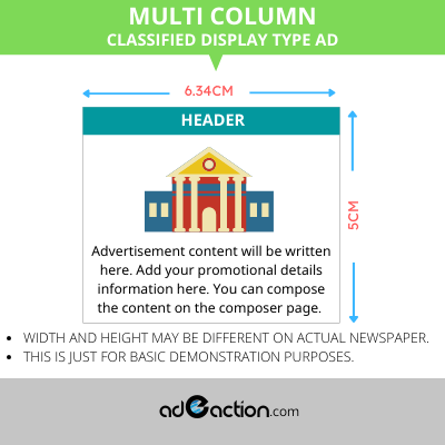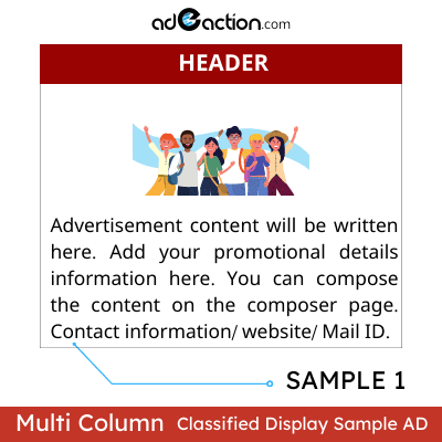 Entertainment Classified display ads are one of the most loved advertising formats. It allows you to add colours, fonts, and images to it. So it can make a good advertisement deal under classified display ads. Booknewad offers the lowest rates for newspaper advertising.