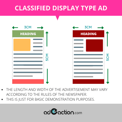 Pets & Animals Classified display ads are one of the most loved advertising formats. It allows you to add colours, fonts, and images to it. So it can make a good advertisement deal under classified display ads. Booknewad offers the lowest rates for newspaper advertising.
